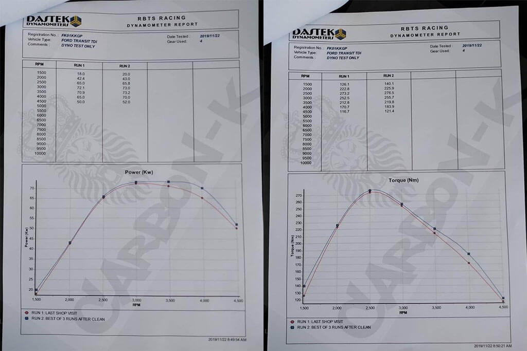 בדיקת מעבדה לייעילות מצערת וכוח מנוע לפני ואחרי טיפול